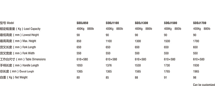 描述: 這里介紹輕便堆高車不同型號(hào)的不同詳細(xì)參數(shù)。